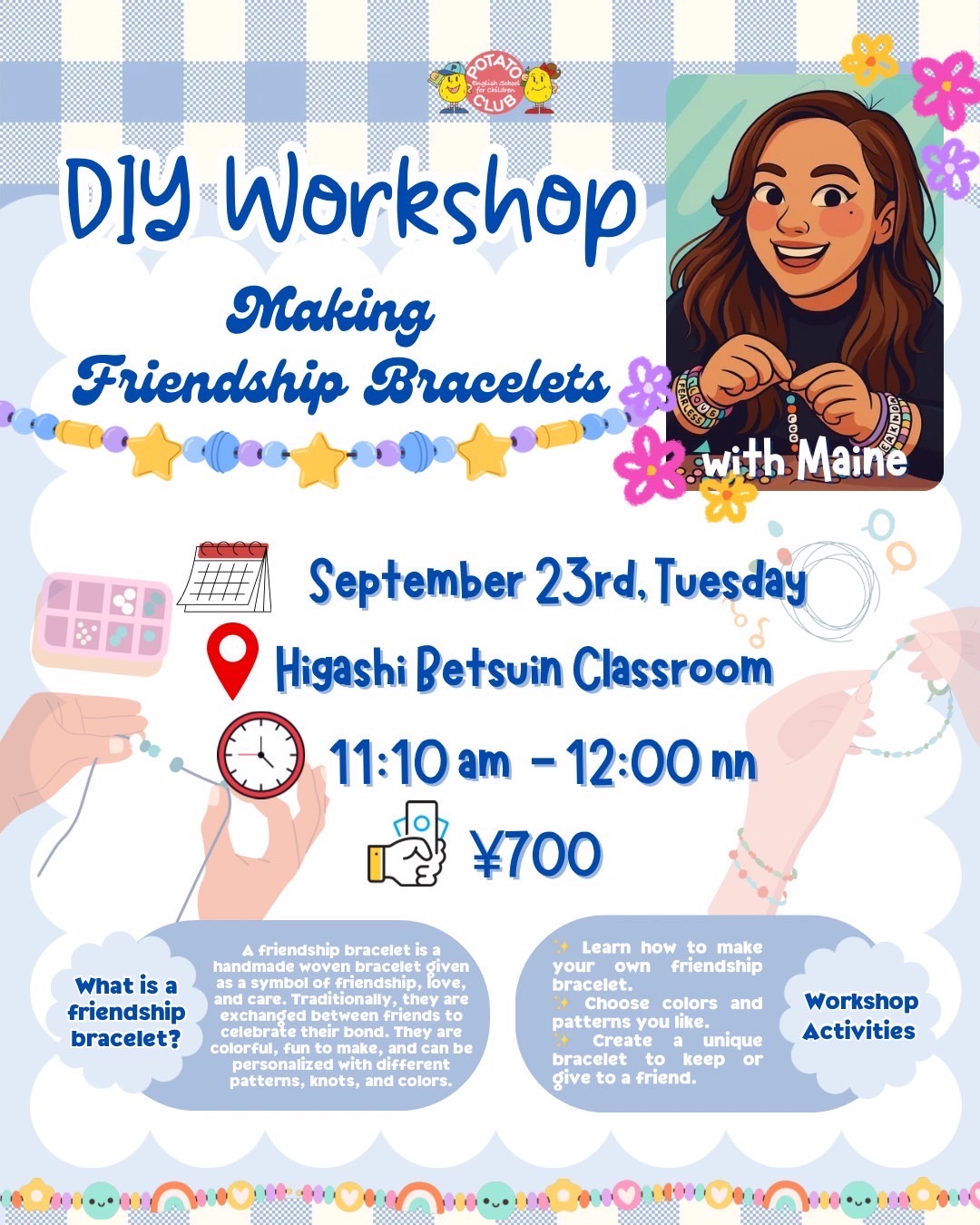 メイン先生とフレンドブレスレット(ミサンガ)を作ろう!